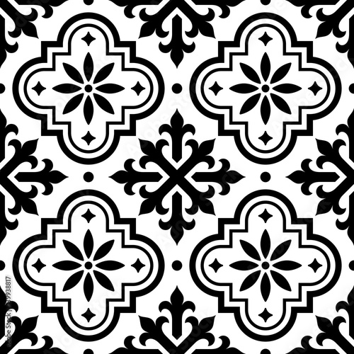 Geometric Vector Tile Design Portuguese Or Spanish Seamless Black And White Tiles Azulejos Pattern Clip Art K Fotosearch