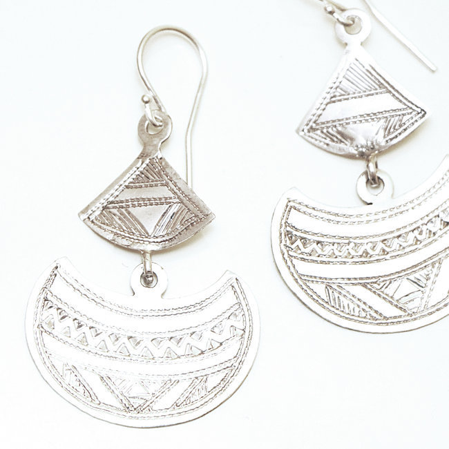 Bijoux Ethniques Touareg Boucles D Oreilles En Argent 925 Pendantes Gravees Niger 013