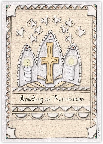 Carte D Invitation Pour Communion Invitation A La Communion Avec Bougies Noble Poissons Et Croix Amazon Fr Fournitures De Bureau