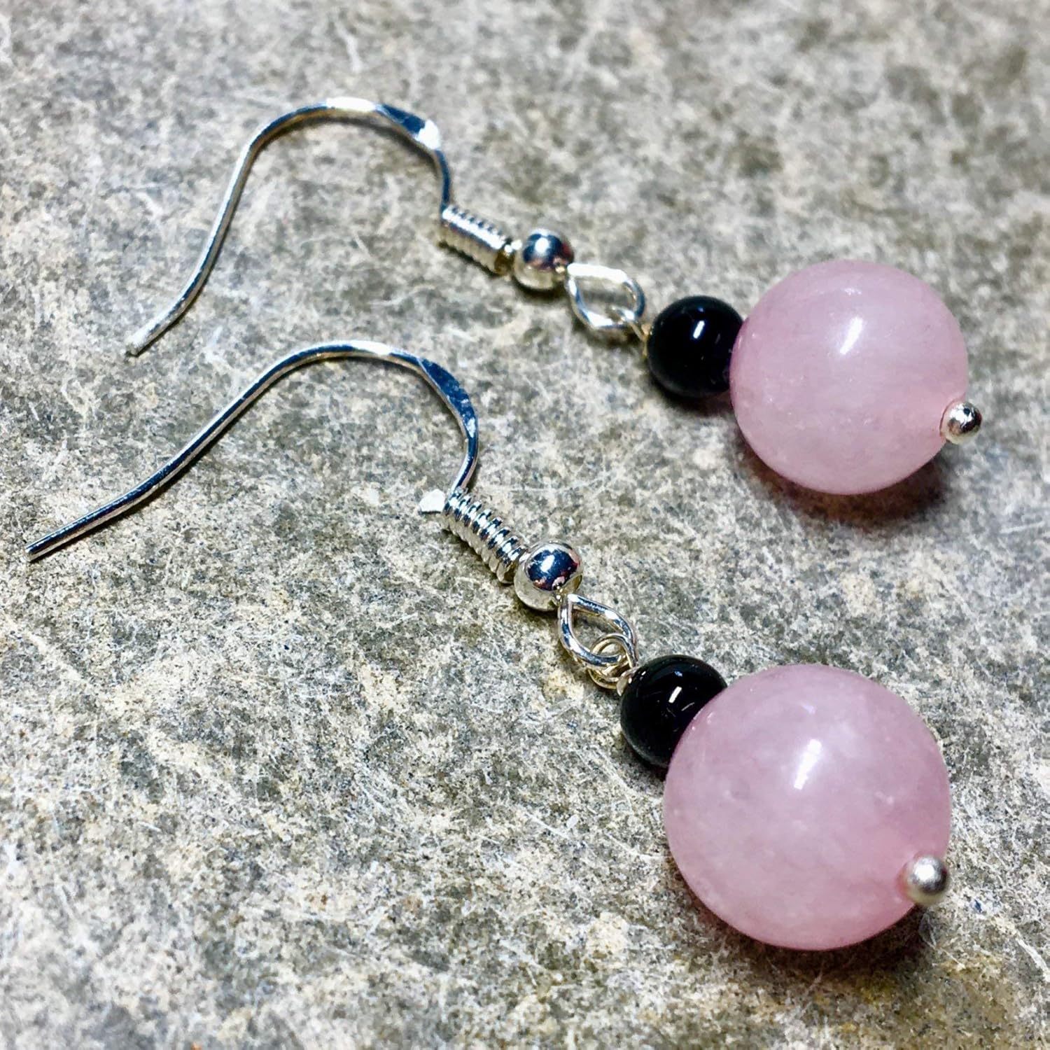 Pierre Semi Precieuse Argent 925 Quartz Rose Boucles Doreilles Rose Rose Holycuscrafts Noir Onyx Boucles Pendantes Produits Handmade
