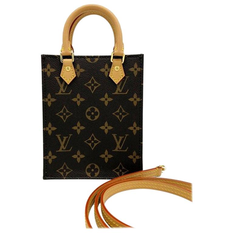 In new condition BRAND Louis Vuitton ACCESSORIES Box, detachable strap, dustbag COLOUR Brown CONDITION New FEATURES Inside flap pocket, monogram coated canvas, two handles HARDWARE Gold MATERIAL Monogram canvas MEASUREMENTS 14 x 17 x 5 cm PRODUCT TYPE Cross Body Bags. The Petit Sac Plat bag in Epi leather is a miniature reinterpretation of one of Louis Vuitton's iconic models the Sac Plat Lightweight and surprisingly spacious, it will hold everyday essentials, including a smartphone It can be carried in the hand, on the shoulder or across the body thanks to its removable strap. Shopping bag, box, dustbag and purchase receipt.