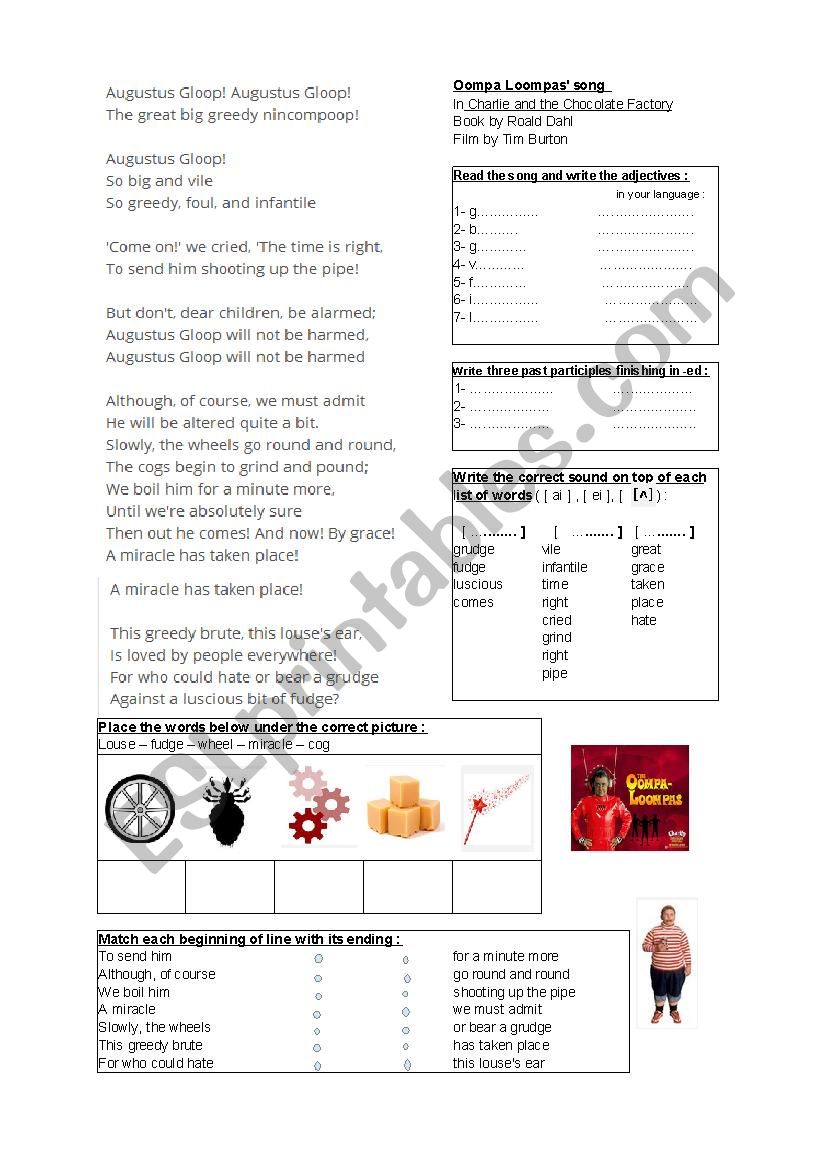 Oompa Loompas Song From Tim Burton S Film Esl Worksheet By Allonsvoirsilarose