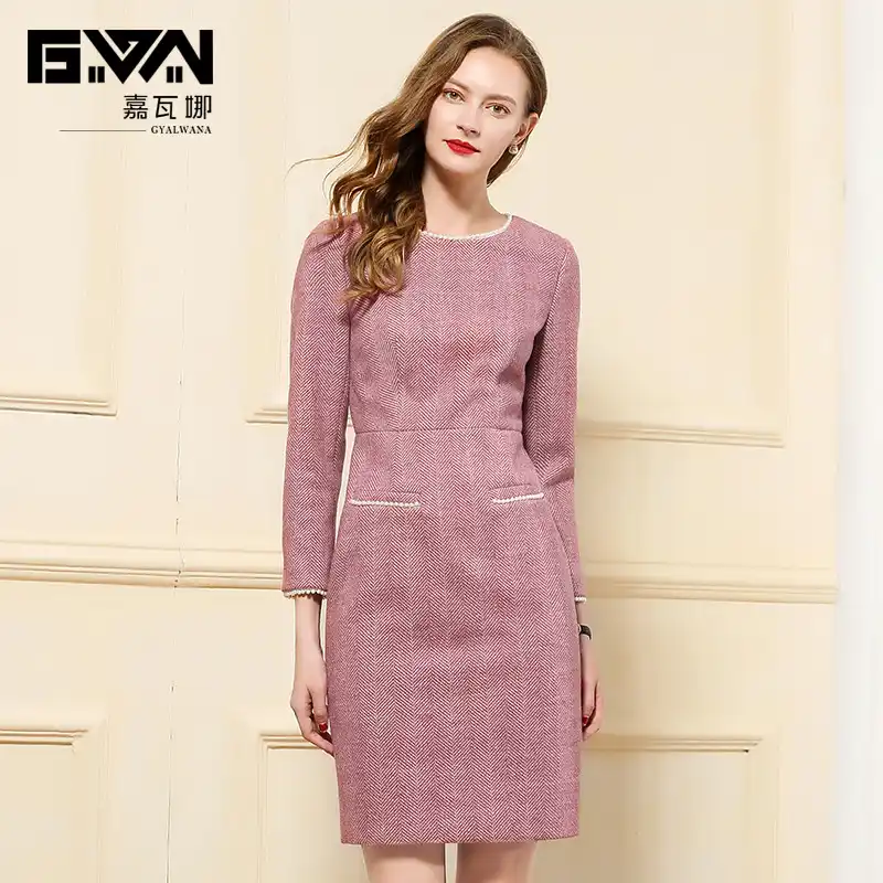 Gyalwana Bureau Dame Robe En Laine Automne Hiver A Manches Longues Femmes Robe De Soiree Grande Taille Col Rond Affaires Robes D Hiver Aliexpress