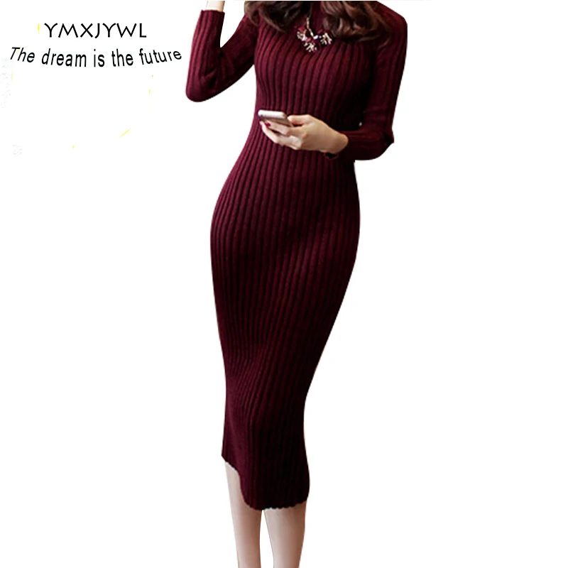 Femmes Robe D Hiver 17 Automne Hiver Midi Manches Longues Laine Robes Femmes Vetements Sexy Moulante Robes Pull Aliexpress