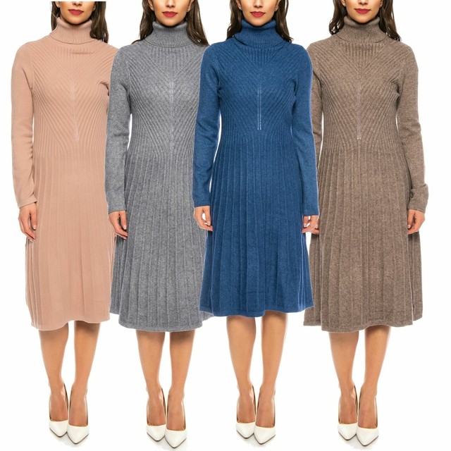 Femmes Tricot Robe En Laine Col Roule Hiver Robe Genou Long Plusieurs Couleurs Ebay
