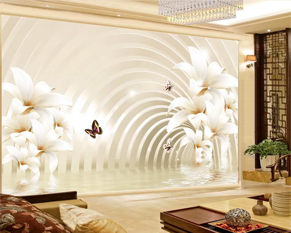 Papier Peint A Fleurs Papillon Fantaisie 3d Fleurs Murales Pour La Maison Le Lac Le Salon La Chambre A Coucher Decoration Murale Papier Peint Aliexpress