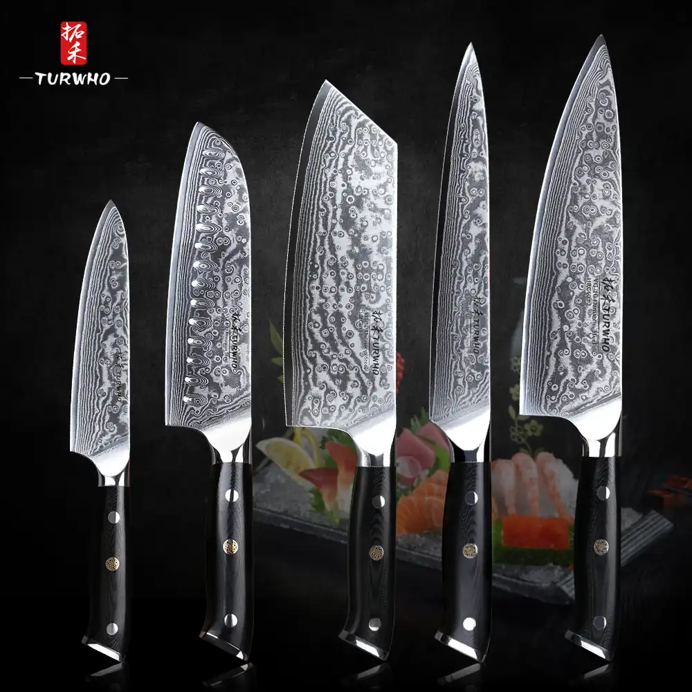 Turwho Set De Couteaux De Cuisine Japonais En Acier Inoxydable Damas Ensemble De Couteaux De Cuisine Pro Cleaver Chef Santoku Aliexpress