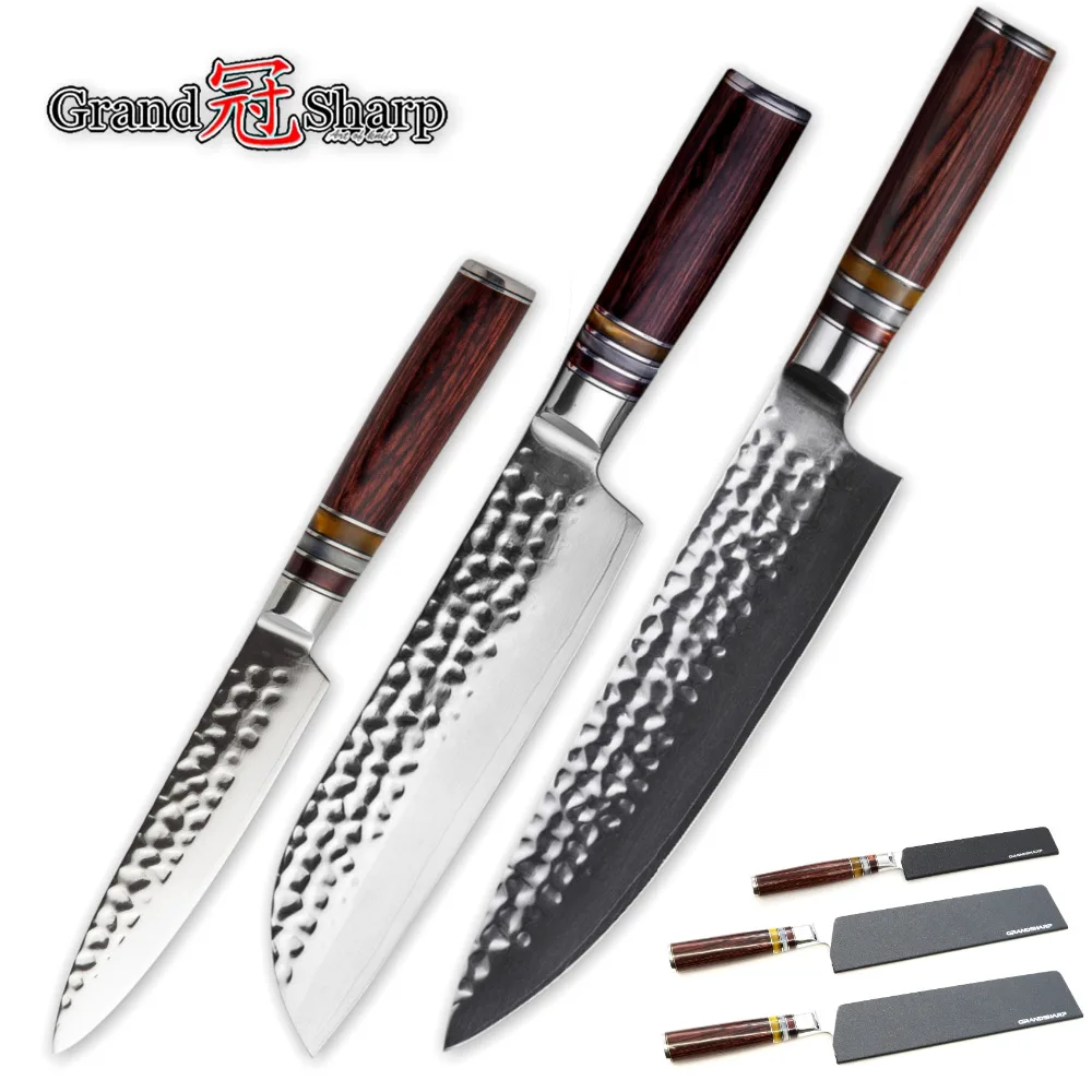 Couteaux De Cuisine Japonais En Acier Ensemble De Couteaux Damas Couteau De Cuisine Lame Martelee Couteaux Japonais Meilleur Cadeau Chef Santoku Fruits 3 Pieces Aliexpress