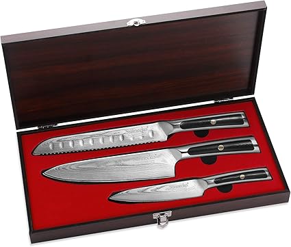 Sunnecko Set Couteau Cuisine Couteaux Damas 3 Pieces Couteau De Chef Couteau A Pain