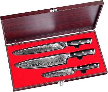 Sunnecko Set Couteau Cuisine Couteaux Damas 3 Pcs Couteau De Chef Couteau A Trancher