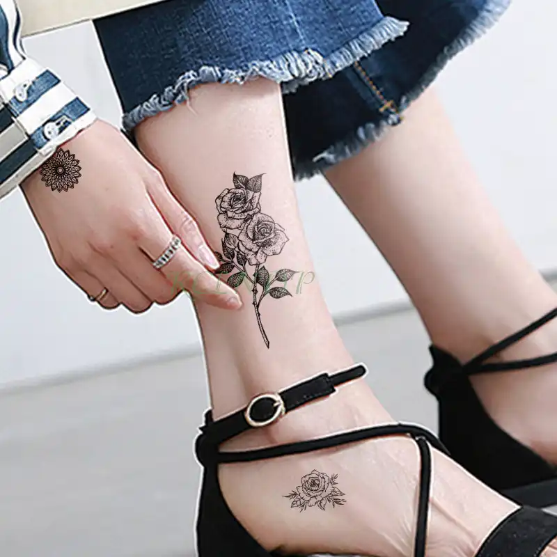 Waterproof Temporary Tattoo Sticker Rose Flower Small Fake Tatto Stickers Flash Tatoo Hand Foot Tattoos For Girl Men Women Kids Temporary Tattoos Aliexpress