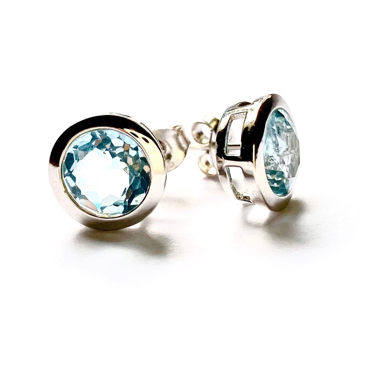 Orovi Bijoux Femmes Boucles D Oreilles Rondes Avec Pierre Precieuse Topaze Bleue Clous D Oreilles En Or Blanc 9 Carat 375 Or Amazon Fr Bijoux