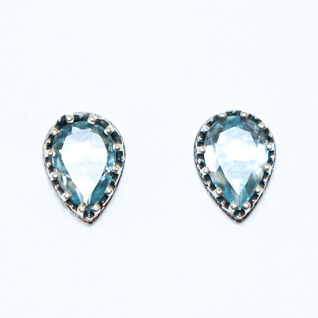 Bijoux Indiens Ethniques Boucles D Oreilles Argent 925 Massif Femme Et Pierre Fine Topaze Bleu Clair Clous Goutte Filigranes Facettes Inde 109
