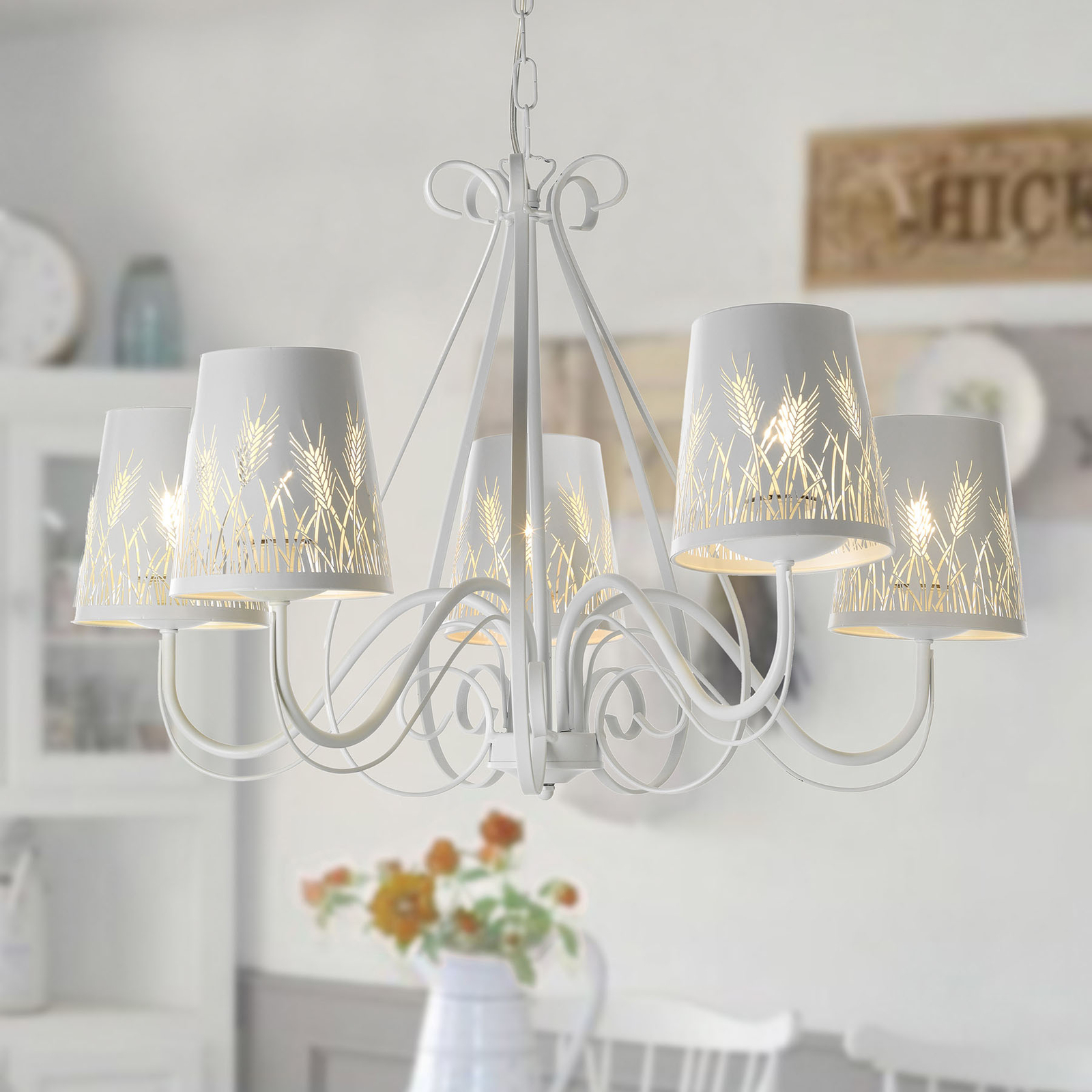 Abat Jour Boeme Blanc Decore E14 O12cm Moneclairageled