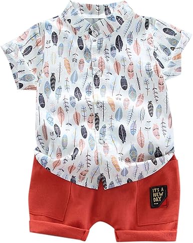 Aimee7 Vetements Bebe Garcon Ete Pas Cher Ensemble Bebe Garcon D Ete T Shirt Chemise A Manches Courtes Imprime Plume Tops Short En Coton Pour 0 3ans Amazon Fr Vetements Et Accessoires