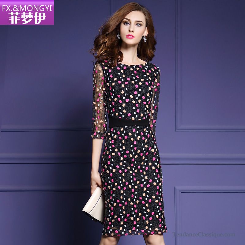 Robe De Cocktail Grande Taille Dentelle Noir Gaine Manche Longue