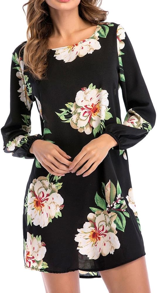 Mini Robe Dame Manche Longue Grande Taille Robe Dos Nu Bowknot Cocktail Printemps Ete Elegant Chic Robe Boheme Casual Plage Robe Droite Mi Longue Sunenjoy Robe Mousseline Femme Fleur Cocktail Vetements