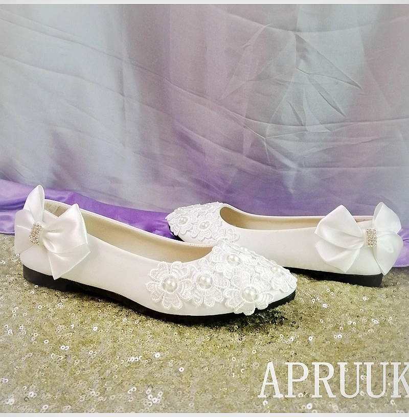 Satin Bow Papillon Noeud Graisses Dentelle Chaussures Pour Mariee Dames Fete Proms Robe Grande Taille 41 42 43 Blanc Chaussures Plates Filles Ceremonie Chaussure Aliexpress