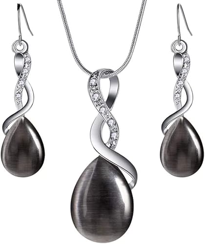 Parure De Bijoux 2 Pieces Goutte De Goutte Noire œil De Chat Quartz Pierre Naturelle Et Argent Torsade Avec Collier Assorti Sur Une Elegante Chaine Serpent En Argent Amazon Fr Bijoux