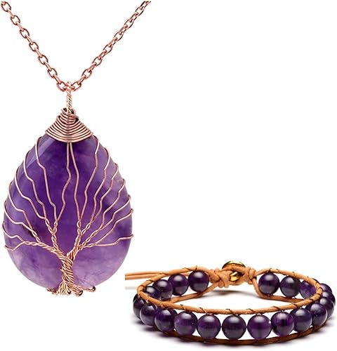 Jovivi Parure De Collier Avec Pendentif En Forme D œuf Arbre De Vie Et Bracelet Elastique Reglable En Perles En Pierre Naturelle Ametista 2 Amazon Fr Bijoux