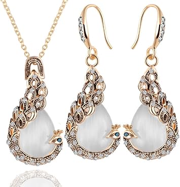 Freessom Parure Bijoux Femme Boucle D Oreille Collier Diamant Paon Mariee Cristal Pierre Naturelle Blanc Pendante Bijoux Original Cadeau Robe Anniversaire Amazon Fr Jeux Et Jouets