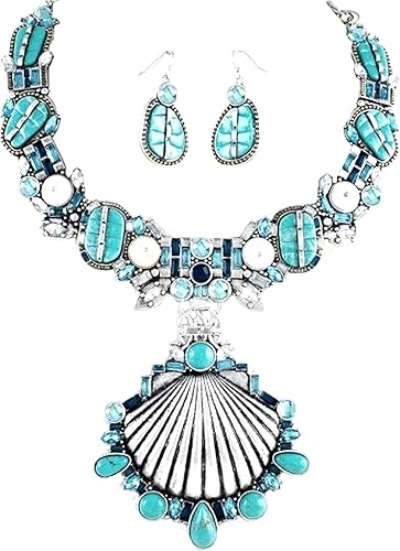 Schmuckanthony Sale Prix Reduit Bijoux Luxueux Unique Parure Set Collier Boucles D Oreilles Cristal Coquillage Resine Pierres Naturelles Turquoises Amazon Fr Bijoux