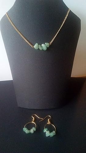 Parure Chaine Et Boucles D Oreilles Dorees Avec Pierres Naturelles D Aventurine Amazon Fr Handmade