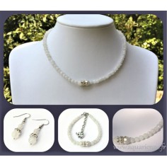 Parure En Argent Et Pierres Naturelles 10mm 8mm Jade Blanc