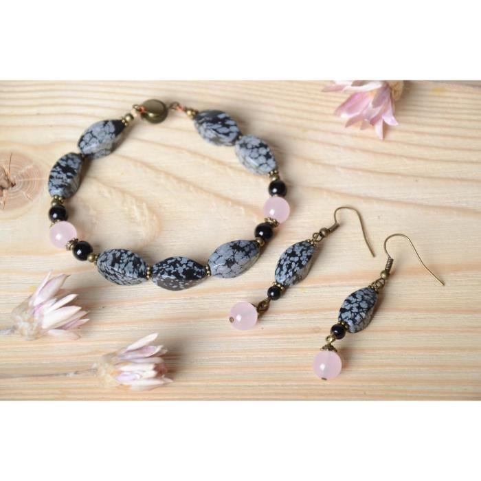 Parure De Bijoux En Pierres Naturelles Faite Main Bracelet Boucles D Oreilles Achat Vente Parure Parure De Bijoux En Pierres