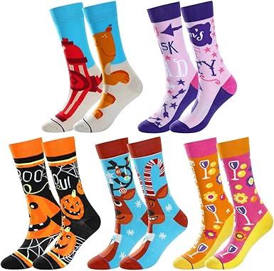 Faletony Chaussettes Mi Bas Noel Halloween Christmas Chaussettes Originales Droles Cartoon Femme Fille 5 Paires Amazon Fr Vetements Et Accessoires
