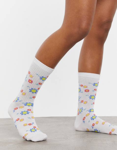 Chaussette A Fleurs Fantaisie Femme En Coton