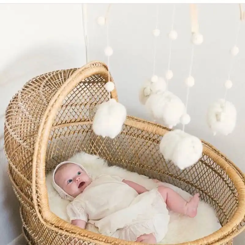 Berceau En Bois Mignon Pour Lit De Bebe Jouets Animaux En Feutre Perles En Bois Naturel Decoration Pour Chambre D Enfant Aliexpress