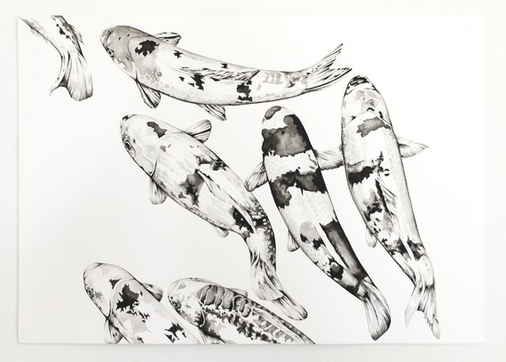 Original Koi Watercolour Painting A3 Japanese Style Black Etsy