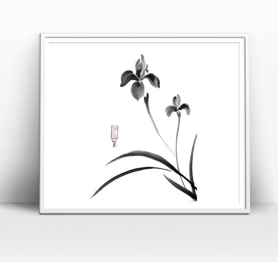 Serene Irises Original Painting Japanese Art Sumi E Asian Etsy
