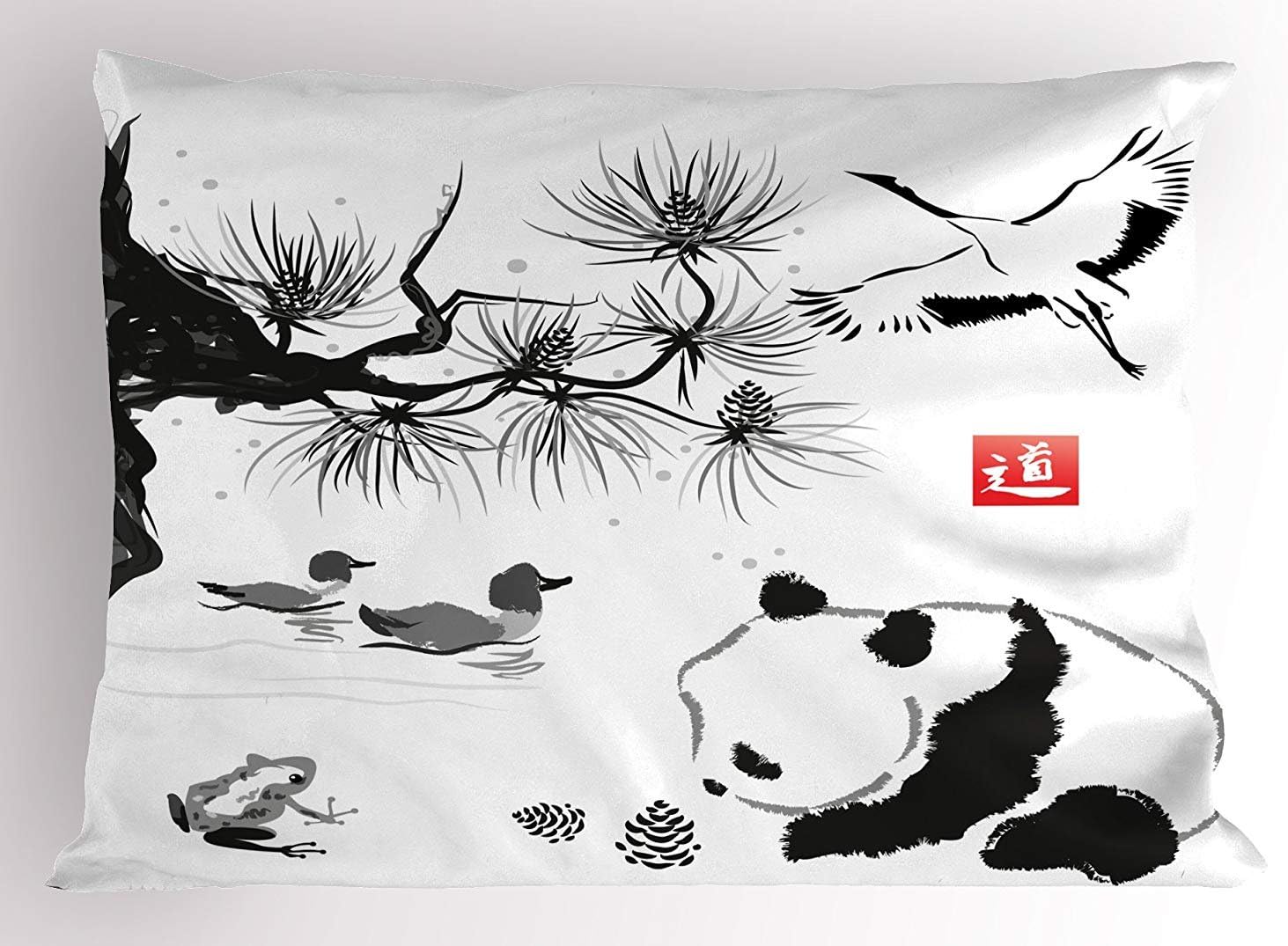 Amazon Com Spxubz Asian Bird Cedar Panda Bear Traditional Japanese Painting Style Art Hieroglyph Way Black White Red Decorative Home Decor Square Indoor Pillowcase Size x36 Inch Two Sides Home Kitchen