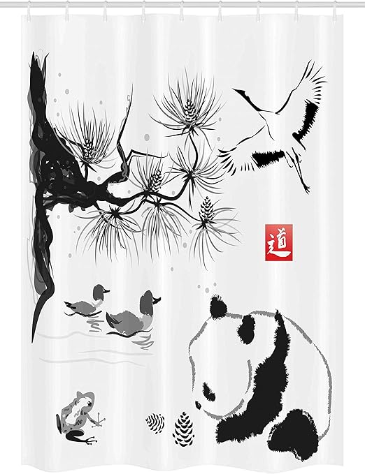 Amazon Com Ambesonne Asian Stall Shower Curtain Bird Cedar Panda Bear Traditional Japanese Painting Style Art Hieroglyph Way Fabric Bathroom Decor Set With Hooks 54 X 78 Black And White Home Kitchen