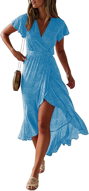 Imjono Mode Robe Ete Femme Grande Taille Robe Longue Femme Robe De Soiree Col En V Decontractee Boheme Chic Sexy Robe Cocktail Amazon Fr Vetements Et Accessoires