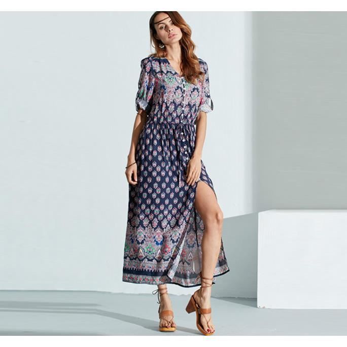 Boheme Mode Imprime Robe De Plage Mode Bouton Taille Reglable Grande Taille Robe Longue Femme Sexy Robe D Ete Bleu Achat Vente Robe Soldes Sur Cdiscount Des Le Janvier Cdiscount