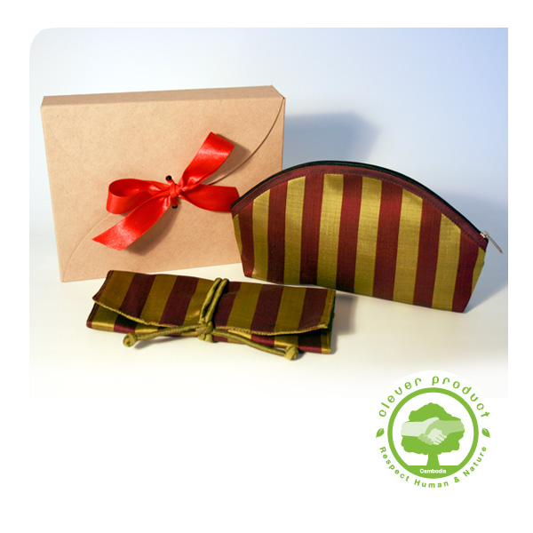 Coffret Cadeau Voyage 2 Accessoires En Soie Fine Vert Lumieres Du Monde Paris