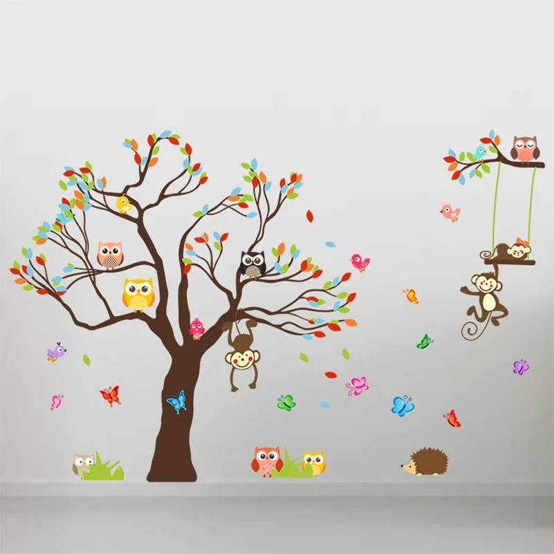 Home Decor Animaux Arbre Wall Sticker Enfants Salle De Jeux Decoration Diy Adesivos De Paredes Sticker Maternelle Fille Cadeau Aliexpress