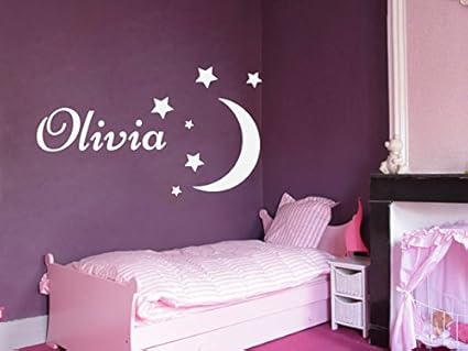 Stickers Muraux Nom Personnalise Autocollant En Vinyle Lune Etoile Fille Pour Chambre D Enfant Chambre A Coucher Maison De Decoration De Chambre Salle De Jeux Window Art Murals Mn553 38tall Amazon Fr Cuisine