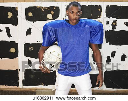 Joueur Football Americain Tenue Casque Portrait Banque D Image U Fotosearch