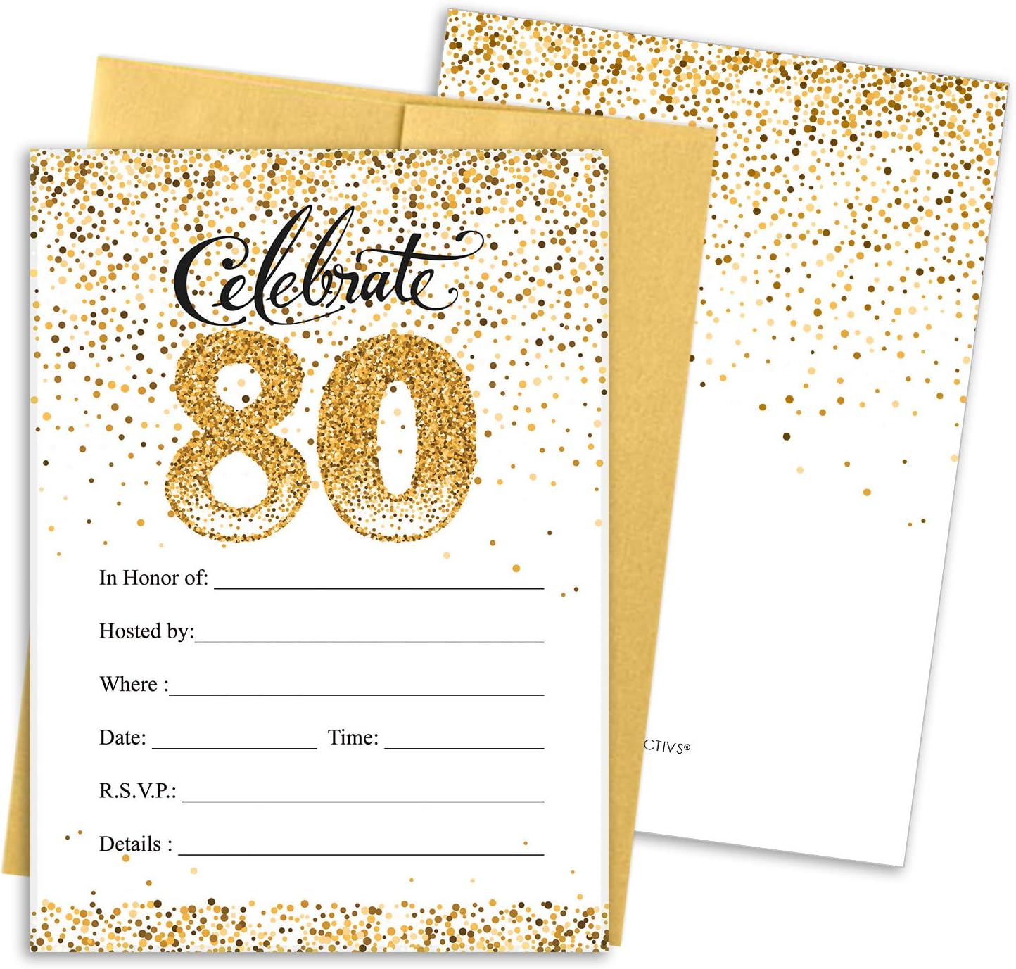 Amazon Com White And Gold 80th Birthday Party Invitations 10 Cards With Envelopes Health Personal Care