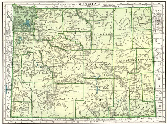1943 Vintage Wyoming State Map Antique Carte Du Wyoming Neat Etsy