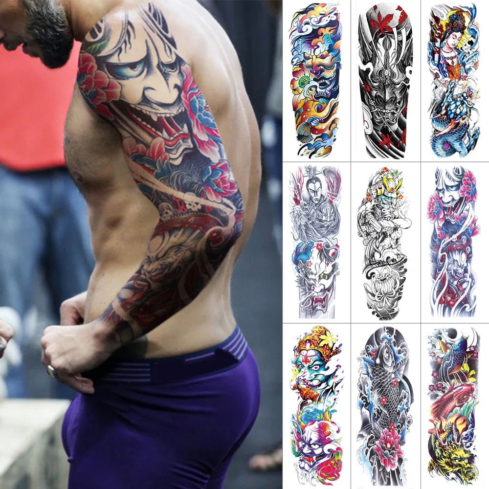 Tatouages Impermeables Autocollant Bras Complet Grande Taille Carpe Koi Crane Tatouage Transfert D Eau Flash Tatoo Faux Tatouage Pour Hommes Femmes Aliexpress