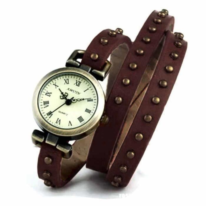 Montre Bracelet Bijou Femme Cuir Quartz Cadran Rond Femme Marron 2 Rangs Wz M0042 Wz M0042 Achat Vente Montre Montre Bracelet Mattie Marron Cdiscount