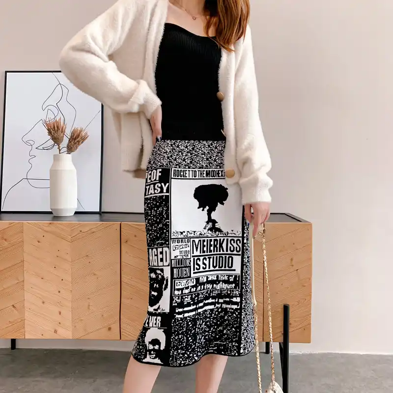 Autumn High Waist Knitted Midi Skirt Women Chic Print Stretch Vintage Women Bodycon Winter Skirts Faldas Jupe Femme Saia Aliexpress
