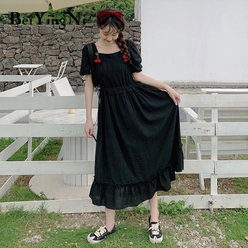 Chic Girls Summer Dress Women Casual Dresses Female Dress Vintage Korean Japan Style Solid Dress Slim Boho Femme Vestido Dresses Aliexpress