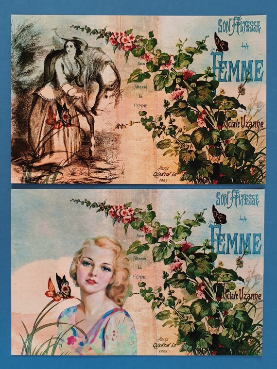 2 X Vintage French Shabby Chic Style Postcards Son Altesse La Etsy