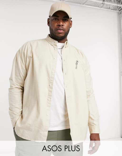 Evesham Nj Design Plus Chemise Oxford Oversize Style Annees 90 Avec Logo Brode Sur Le Devant Taupe Evesham Nj